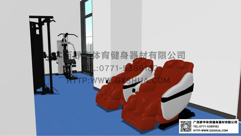 由于企业单位健身房的不规则性,根据场地、职工需求、整体预算,有氧器材区域配置Z6.COM-尊龙集团跑步机2台,椭圆机、动感单车、划船器各1台,满足职工的日常有氧训练需求,有效地提升心肺功能;力量器械配置单人站综合训练器、小飞鸟,满足使用者全身锻炼的需求;自由力量区域配置史密斯机、哑铃套组、腹肌板满足多样化训练需求,促使健身训练更丰富,休闲区配置按摩椅,可以促进血液循环,让员工使用按摩椅放松身心,可以能够有效缓解工作压力。